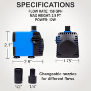 Aqua Dream 160 GPH Pond Fountain Feature Adjustable Water Pump 15’ SJTW 3-Prong Plug